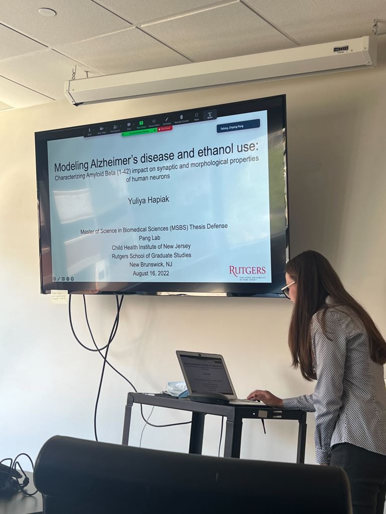 | April 2017 | Heather McGowan successfully defended her PhD Thesis on April 24, 2017! Thesis titled, “Implications for chromosone 21-encoded mIRNAs and MeCP2 in synaptic dysfunction in trisomy 21.” Heather officially graduated from the Rutgers GSBS and earned her PhD. She will join the RWJMS to earn her MD. |